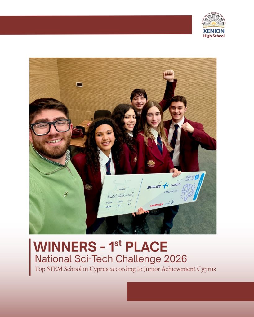 We also participate regularly in international competitions. For example, the Xenion team were national champions in the Sci-Tech Challenge Cyprus 2026 and travelled to Belgium to compete in the European finals against teams from across the continent. Furthermore, through participation in the Junior Achievement programme, our school was designated the Best STEM School in Cyprus, recognising our strong commitment to innovation, entrepreneurship, and excellence in STEM education.